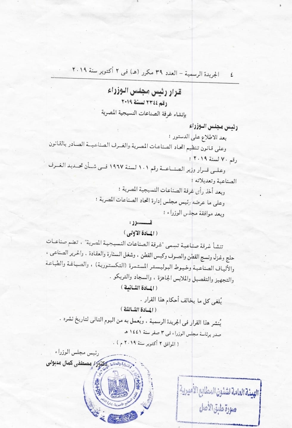 يضمن وضوح الاختصاصات وتكامل حلقات الإنتاج داخل القطاع. وقد شمل القرار مختلف مراحل صناعة الغزل والنسيج والملابس الجاهزة ومشتقاتها، وفقًا لما ورد رسميًا في قرار الإنشاء.